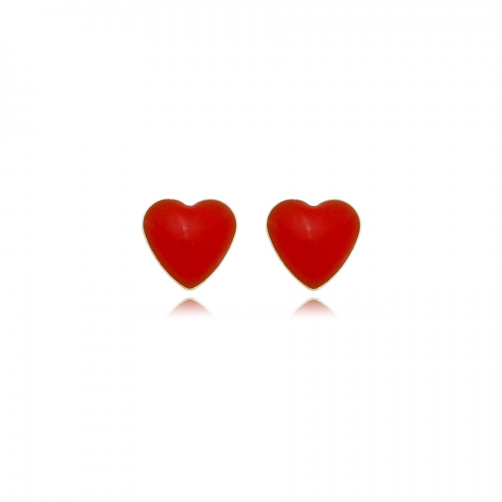 Brinco Coracao Esmaltado Vermelho Banho de Ouro 18k