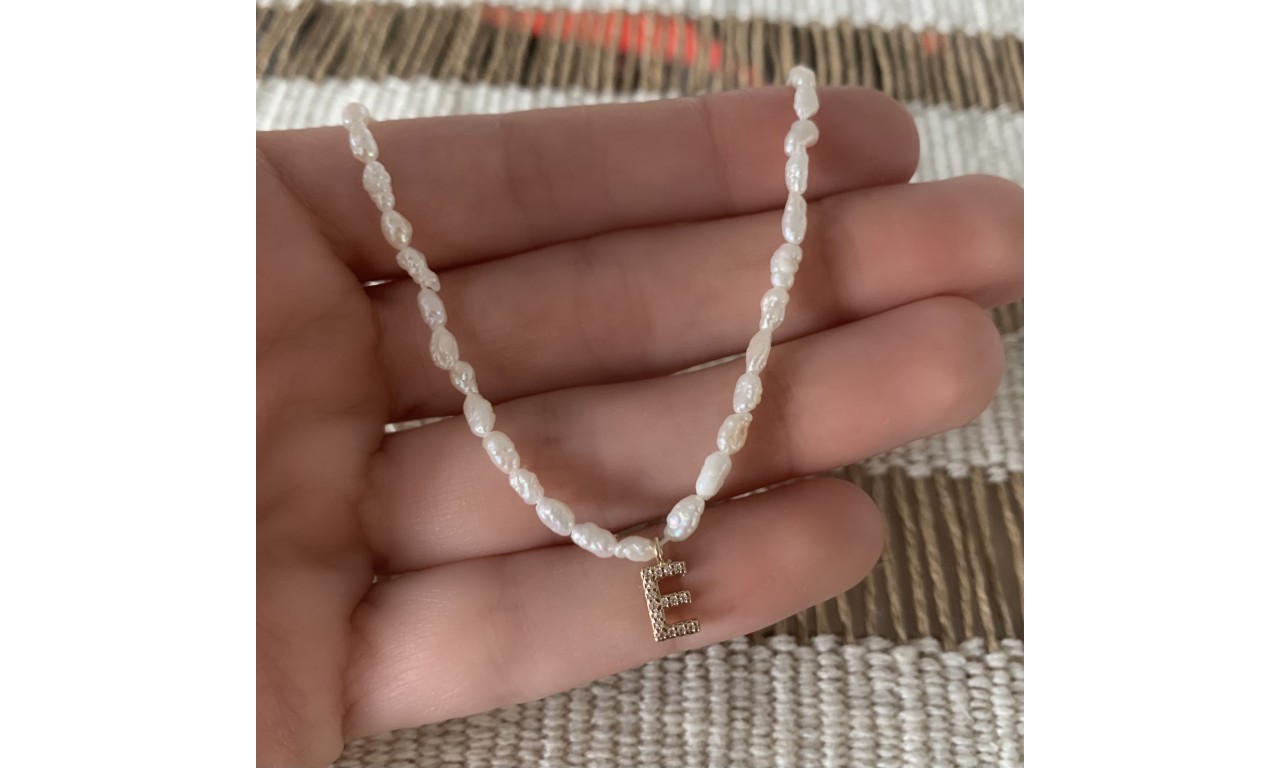 Colar Inicial Pérola Barroca Banho de Ouro 18k