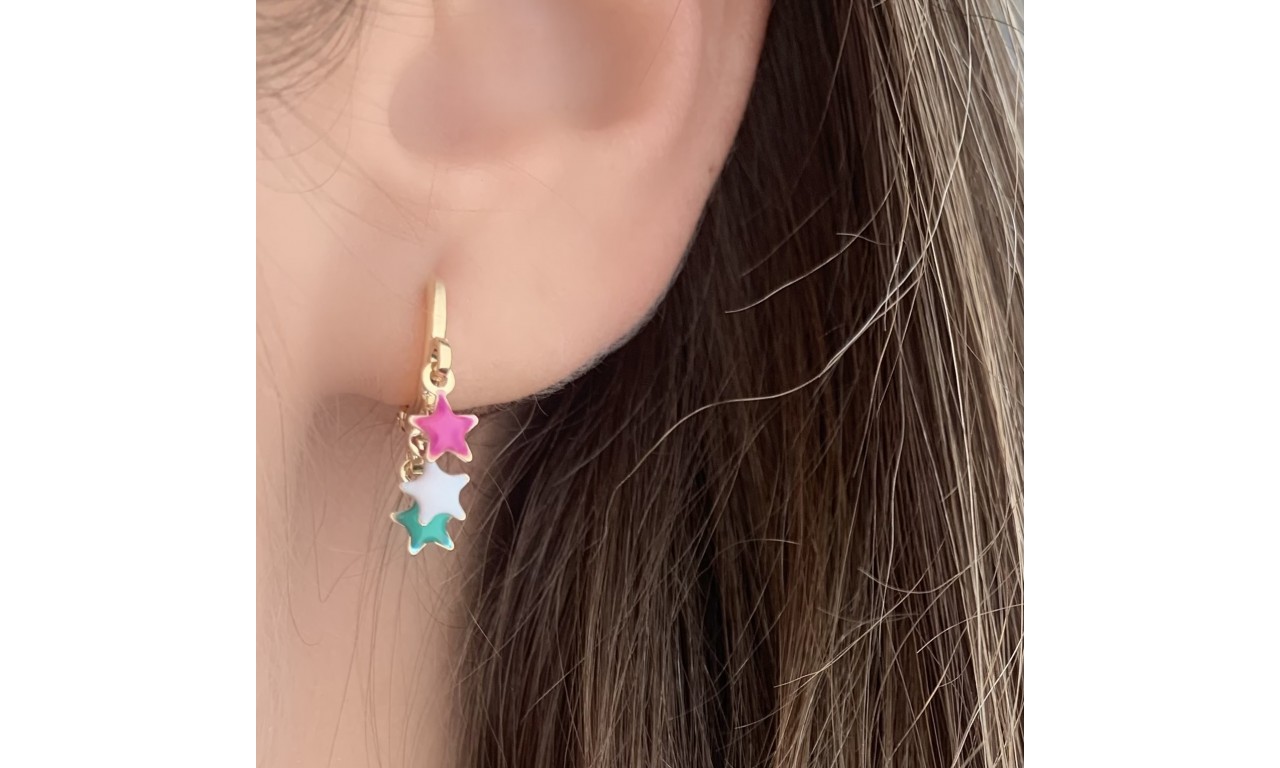 Brinco Argola Estrelinhas Colors Banho de Ouro 18k