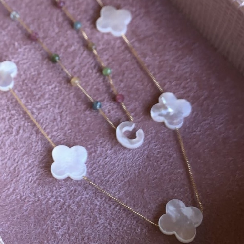 Colar Inicial Madrepérola Pedras Naturais Banho de Ouro 18k.